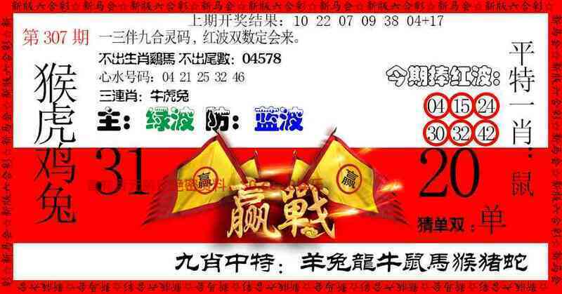 307期:九肖【猴虎鸡马兔猪鼠龙】开:狗20中